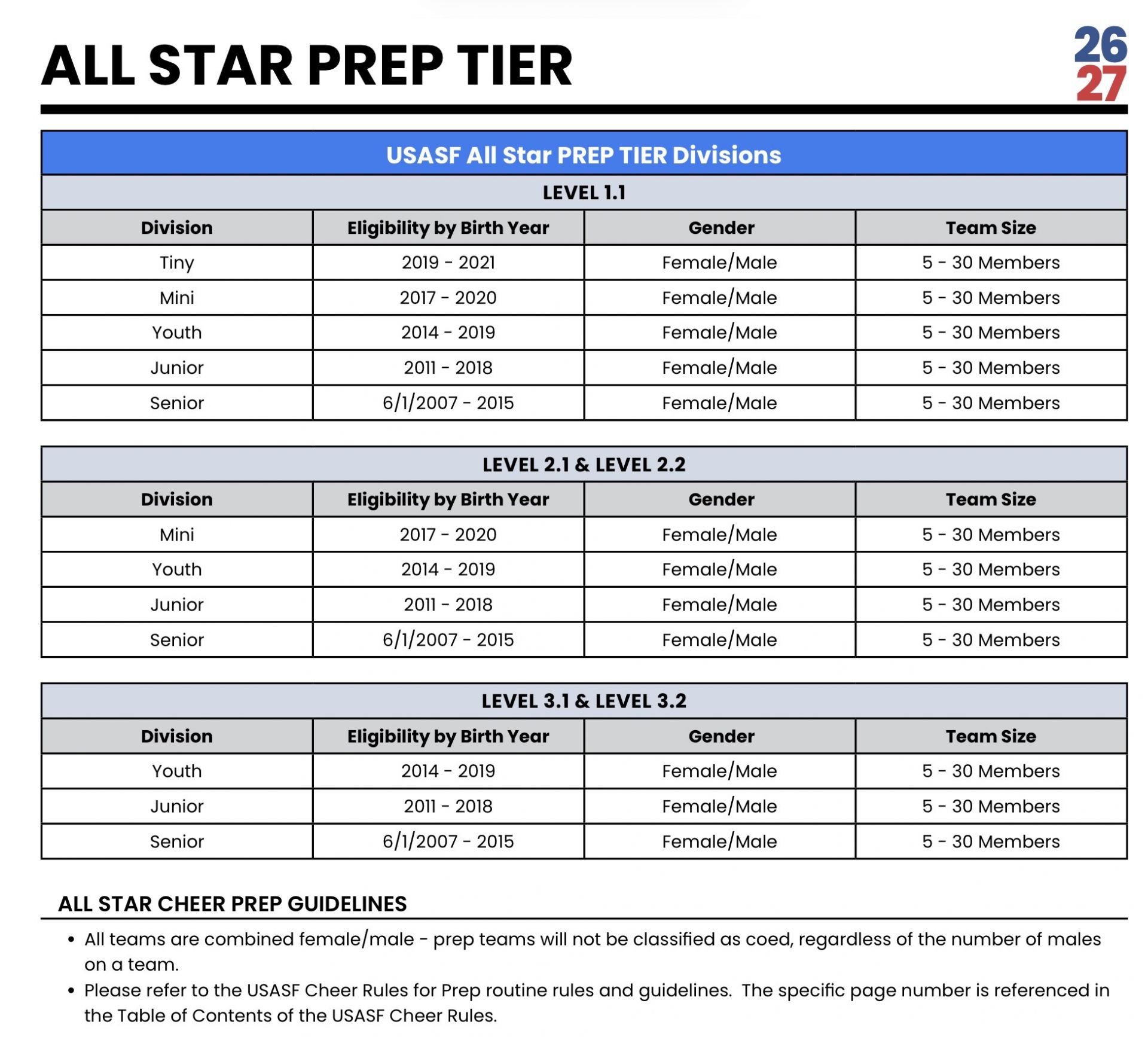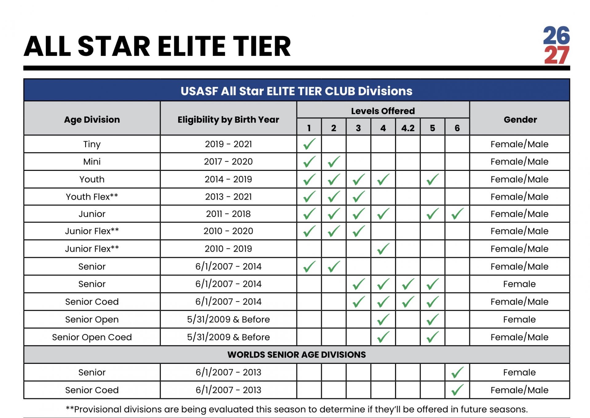 NEW 2026-27 AGE GROUPS and DIVISIONS